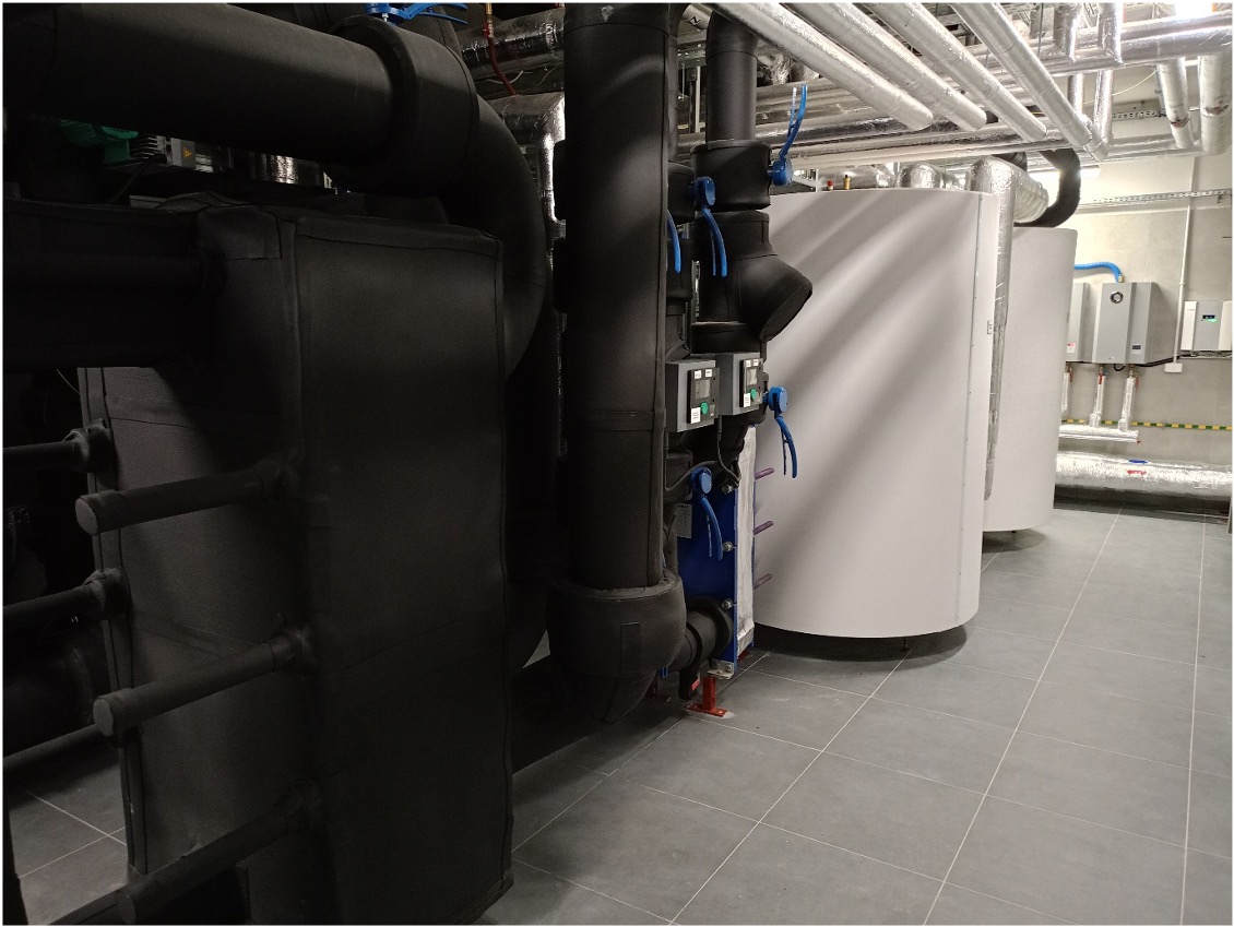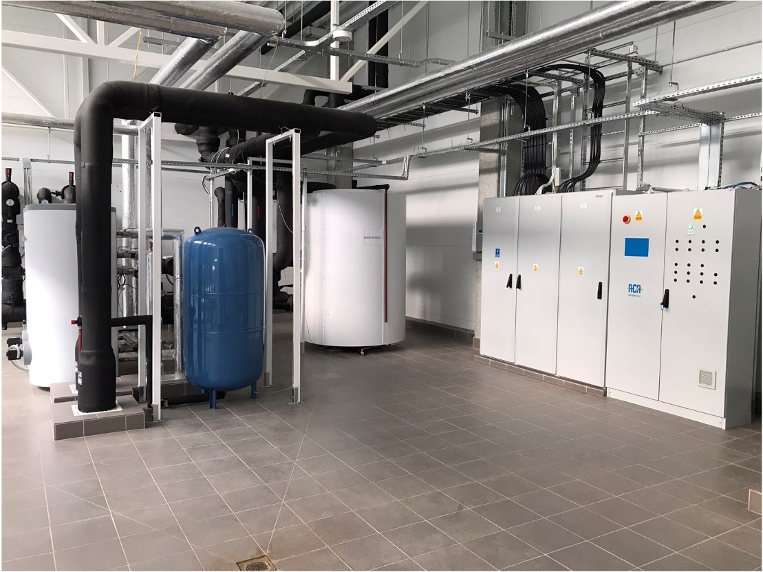 Three independent heating and cooling systems based on cascades of air-source and ground-source heat pumps supply a production and office complex with a total area exceeding 30,000 m².The systems combine ground and air heat sources that activate depending on the conditions of the ground source. This approach ensures high energy efficiency, low operating costs, and minimal environmental impact.